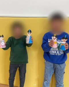 ひな祭りの製作を行いました🎎 「難しいな〜」と言いながらも可愛いお雛様が出来上がりました✨ 出来上がったら嬉しそうに玄関に飾っていた子どもたちです😆