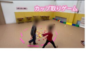 カップ取りゲームをしました🥤 音楽をよく聴いて参加していました🎵 「これ楽しい!まだやりたい!!」と何度も挑戦して楽しんでくれました☆