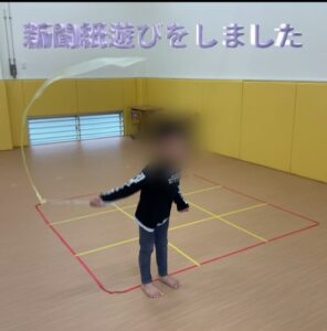 新聞紙遊びをしました♪ 新聞紙じゃんけんゲームをしたり、剣やリボンをつくり楽しんでいました☺️