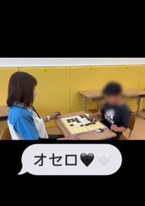 みんなで紙飛行機レースや小麦粉粘土をして盛り上がりました😆 「オセロがしたい」とリクエストもあり、手作りオセロで対決しています‼︎