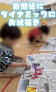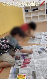 ぐるぐるお絵描きをしました🖍️ ダイナミックにお絵描きをしています。 クレヨンを何本も持って一気に色付けする姿もあり、虹ができていました🌈