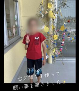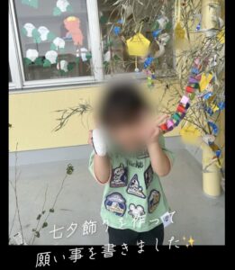 七夕飾りを作って飾りました🎋 それぞれお願い事を書いて飾っていましたよ😆